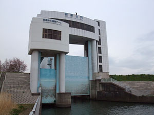 江戸川の松戸市と市川市の市境に柳原排水機場があります。排水機場は松戸市となりますが、江戸川に面する柳原水門、柳原排水樋門ゲート